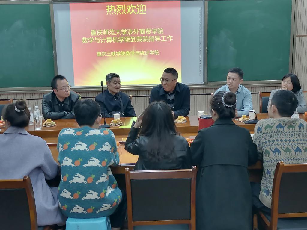 为提高育人质量、提升教育内涵。2020年11月19日,数学与计算机学院党总支书记赵鹏带领王良成教授、马秀芬副教授和团总书记(学工办主任)冉启周一行四人来到重庆三峡学院数学与统计学院,跟踪我院毕业生硕士研究生学习状况,同时协调开展其它相关工作。