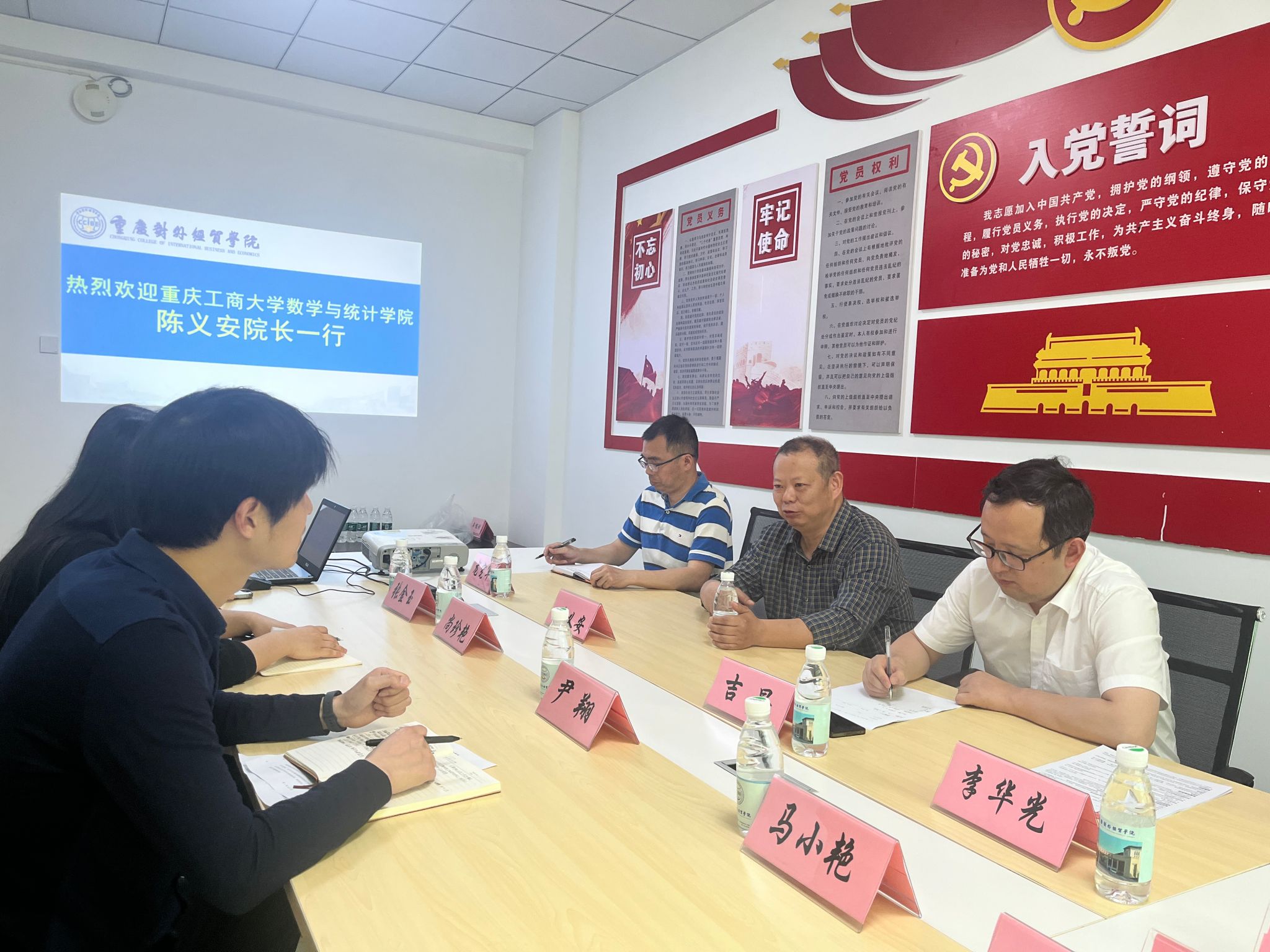 2024年4月15日下午,重庆工商大学数学与统计学院院长陈义安、党委副书记、纪委书记吉杲、副院长龙宪军及研究生辅导员李华光一行,到我校数学与计算机学院开展调研交流。我校数学与计算机学院党总支书记尹翔、教师代表尚珍艳、马小艳、张金玉、乔玉琳参加本次活动。