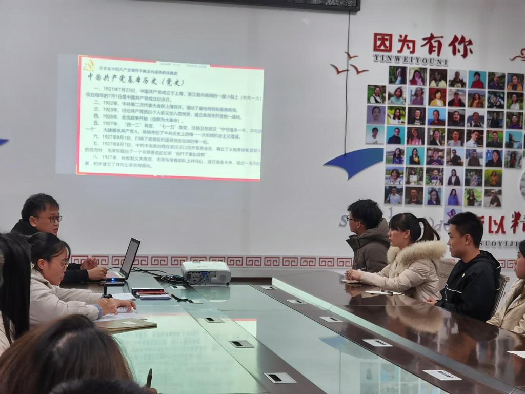 本次会议由刘兰同志主持,付楙浡同志主讲。首先,由付楙浡同志带领全体党员集中学习“四史”内容,付楙浡同志以时间发展为脉络,辅以生动的历史小故事,将“四史”内容娓娓道来。接着,党员同志积极参与讨论发言,表示要不断从历史中吸取经验智慧,以知促行,以行促知,感悟和践行共产党人的初心与使命。