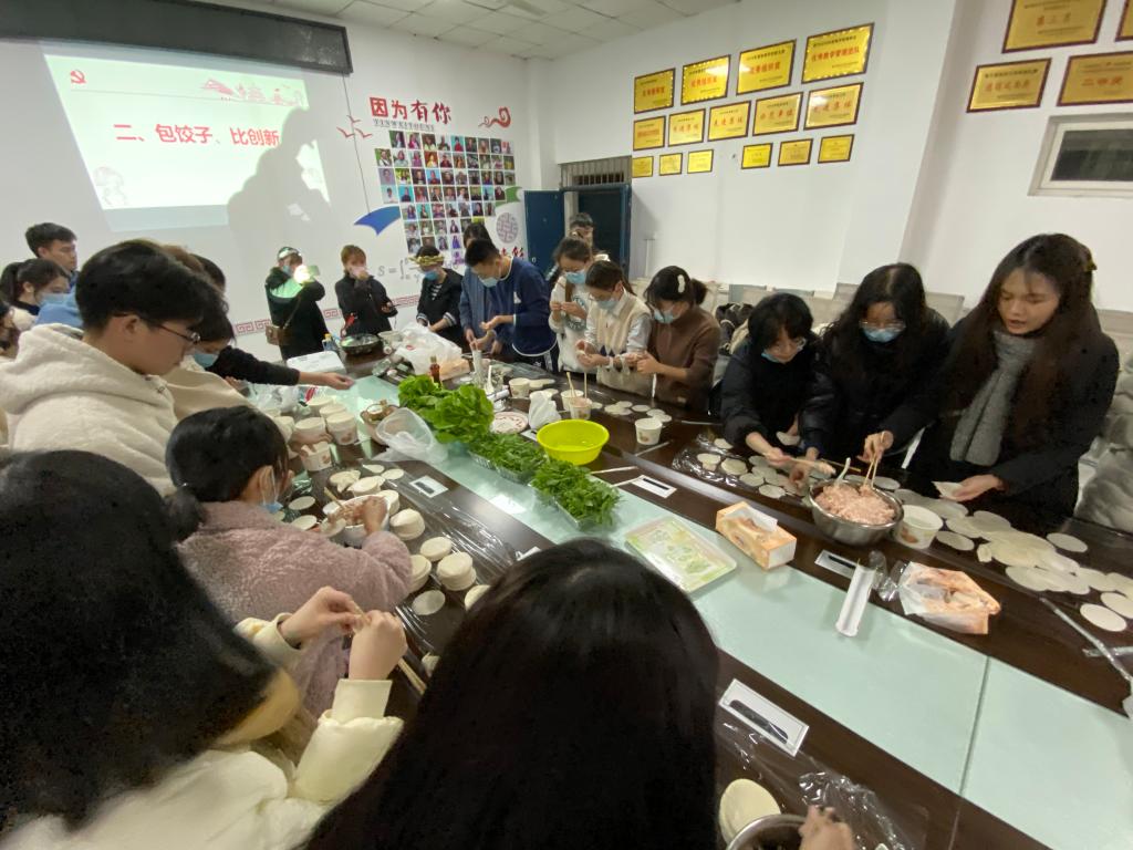 本次活动分为四个部分展开。包饺子,煮饺子,猜灯谜,赠福语。活动前期,工作人员将准备好的饺子皮、肉馅、佐料等其他材料准备好,随后师生一起开始包饺子大赛,最终第三小组夺得头筹;在煮饺子的过程中,开始猜灯谜游戏,大家积极抢答,不胜热闹;煮好饺子以后,为考研学子送上祝福。了解到很多考研学子为努力学习而常常不能吃上一顿热腾腾的饭,今天在这里吃上一顿喷香可口的饺子赵鹏书记表示,支部举办“研途送暖,圆梦考研”活动目的是想让考研学子在紧张的学习中感受到学院的关怀与集体的温馨,给青春留下美好回忆。