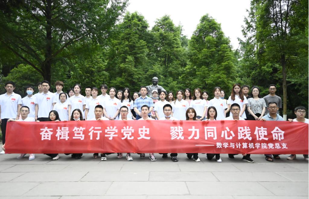 为庆祝中国共产党成立100周年,感悟波澜壮阔的百年征程,从党史中汲取奋进力量,传承红色基因,2021年6月17日上午,数学与计算机学院党总支开展“奋楫笃行学党史,戮力同心践使命”主题党日活动,学院党总支书记、教师党员和学生党员50余人前往广安市邓小平故里参观学习。