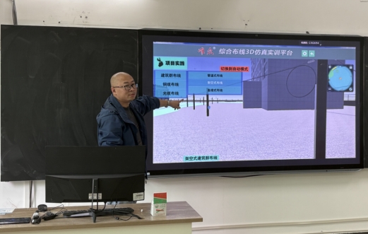 任昌鸿老师在《系统集成与综合布线》课程中,充分利用VR技术突破教学空间限制。他通过沉浸式VR场景,使学生能够360度观察综合布线工程的各个细节节点,清晰了解设备内部的连接关系与施工工艺,有效解决了传统实训中“看不清、进不去、难重复”的痛点,显著提升了学生的工程认知与实践能力。